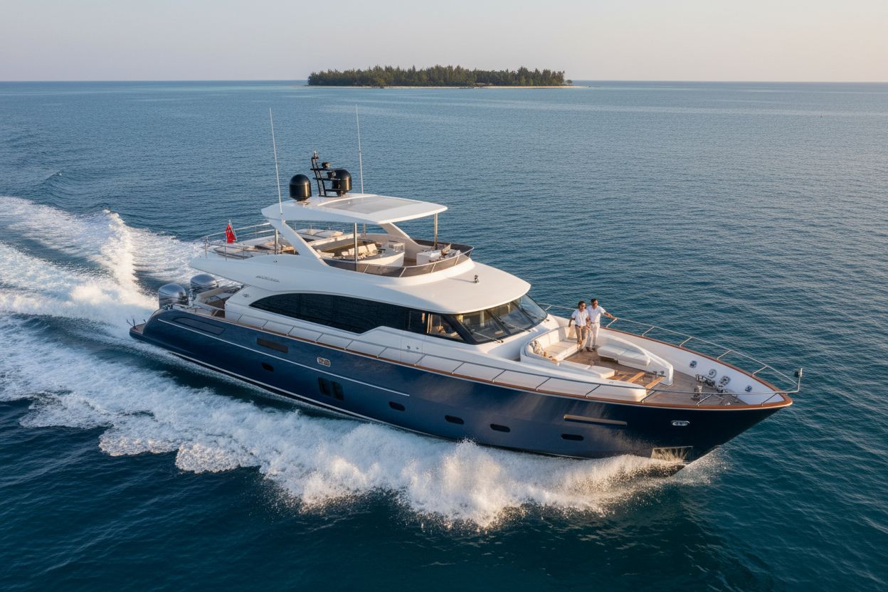 Les yachts à moteur, souvent dotés de moteurs puissance, sont prisés pour leur vitesse et leur capacité à manœuvrer facilement. Naviguer un bateau à moteur demande une bonne compréhension des instruments de bord et des compétences en manœuvre, surtout dans des conditions venteuses.